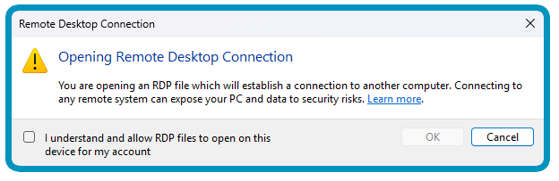 - Open only trusted RDP files